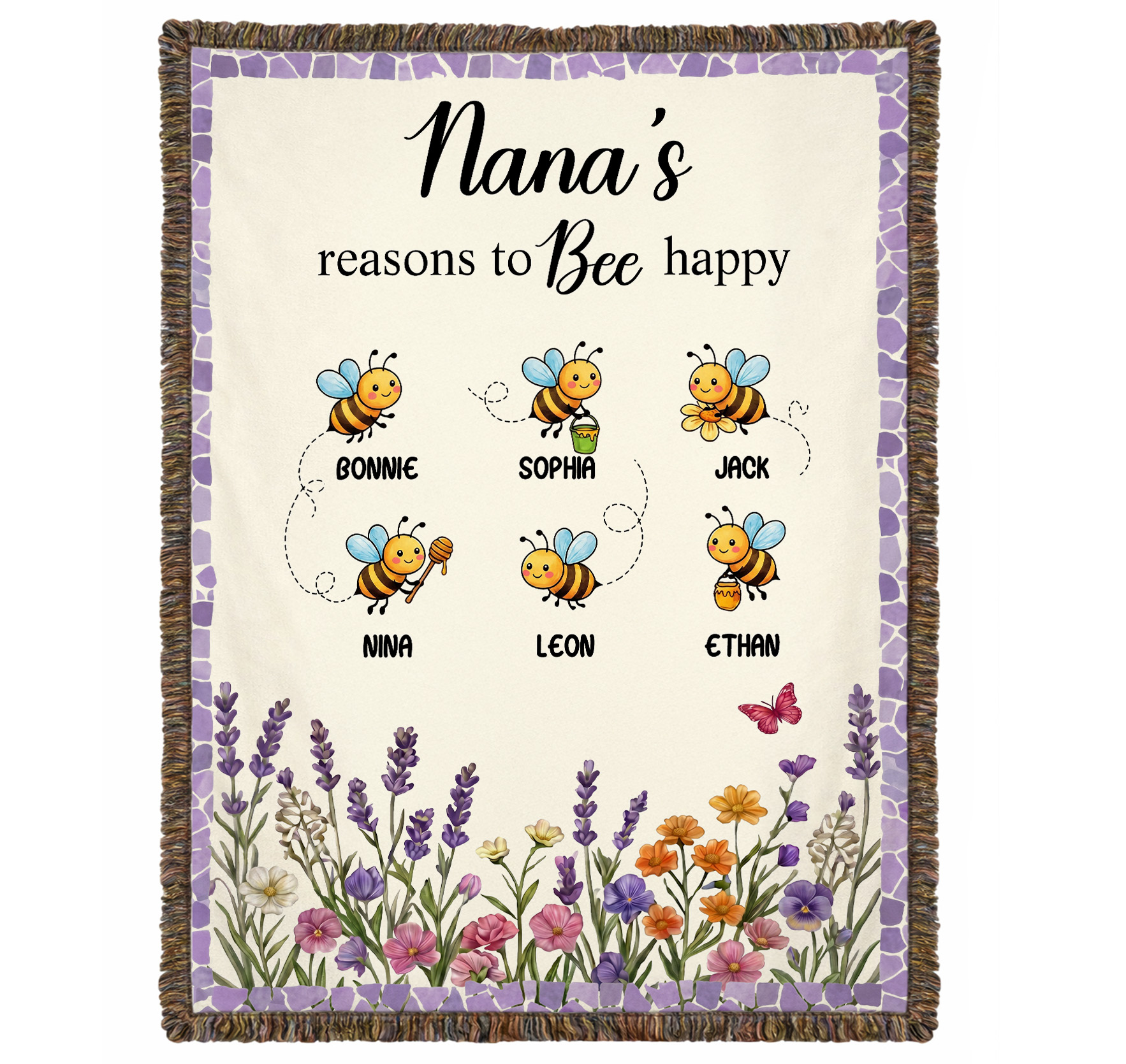 Personalized Family Names - This blanket can be customized with the names of children or loved ones, turning it into a heartfelt keepsake for Mom, Grandma, or Nana. Each added name creates a meaningful reminder of the family members who fill her life with love.